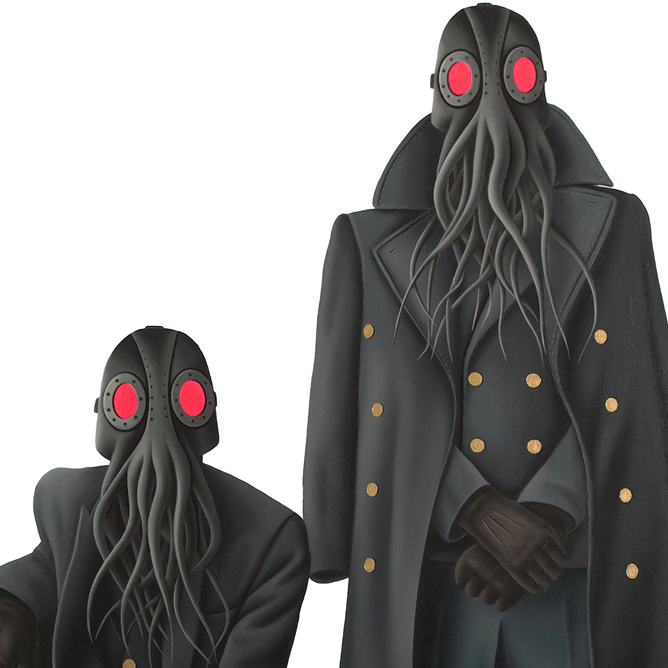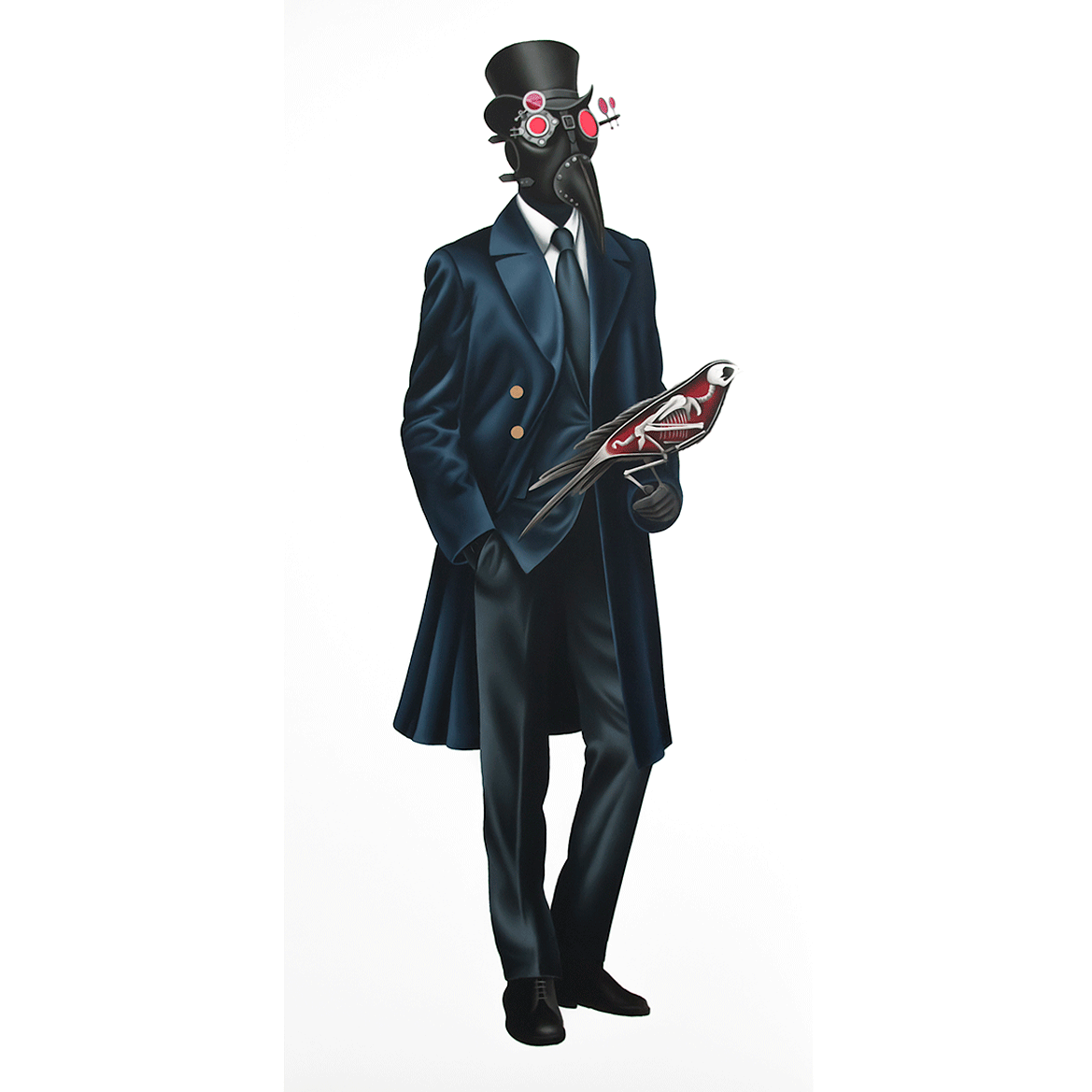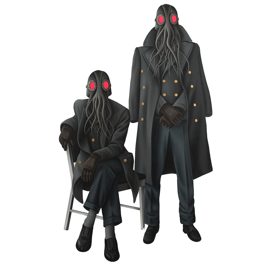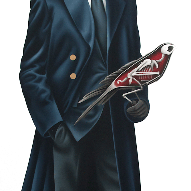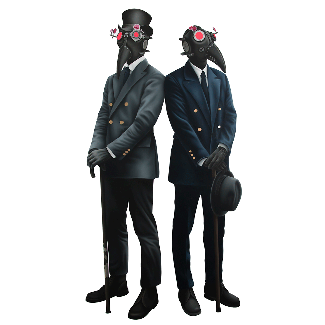 Guerra y Globalización es la tercera exposición individual de Xevi Vilaró en STOA, comisariada por Roberto Ballesteros y Conchi Álvarez. Pinturas realizadas al óleo sobre metacrilato, técnica identificativa de este artista, impactan al asomarnos  a la muestra. Son retratos de cuerpo entero de personajes impecable y elegantemente ataviados en tonos oscuros, contrastando con el níveo fondo del metacrilato. Con ello el autor invade el espacio del espectador de tal manera que nadie puede sustraerse a su observación. Y al epatar, surge el mecanismo de interpretación de cada individuo. En las muestras anteriores de Vilaró en STOA, “Morituri te salutant” y “Amazonas” hicimos ese ejercicio. En esta ocasión tenemos el privilegio de contar con la personal exégesis de Roberto Ballesteros.